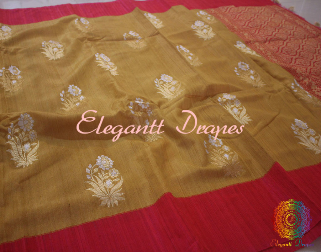 Mustard Banarasi Pure Tussar Silk Alfi Saree