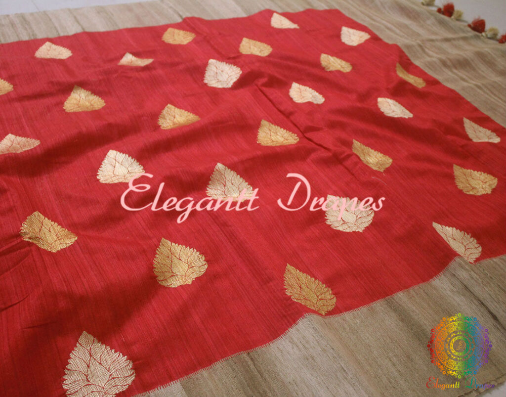 Gorgeous Red Banarasi Handloom Pure Tussar Silk Saree