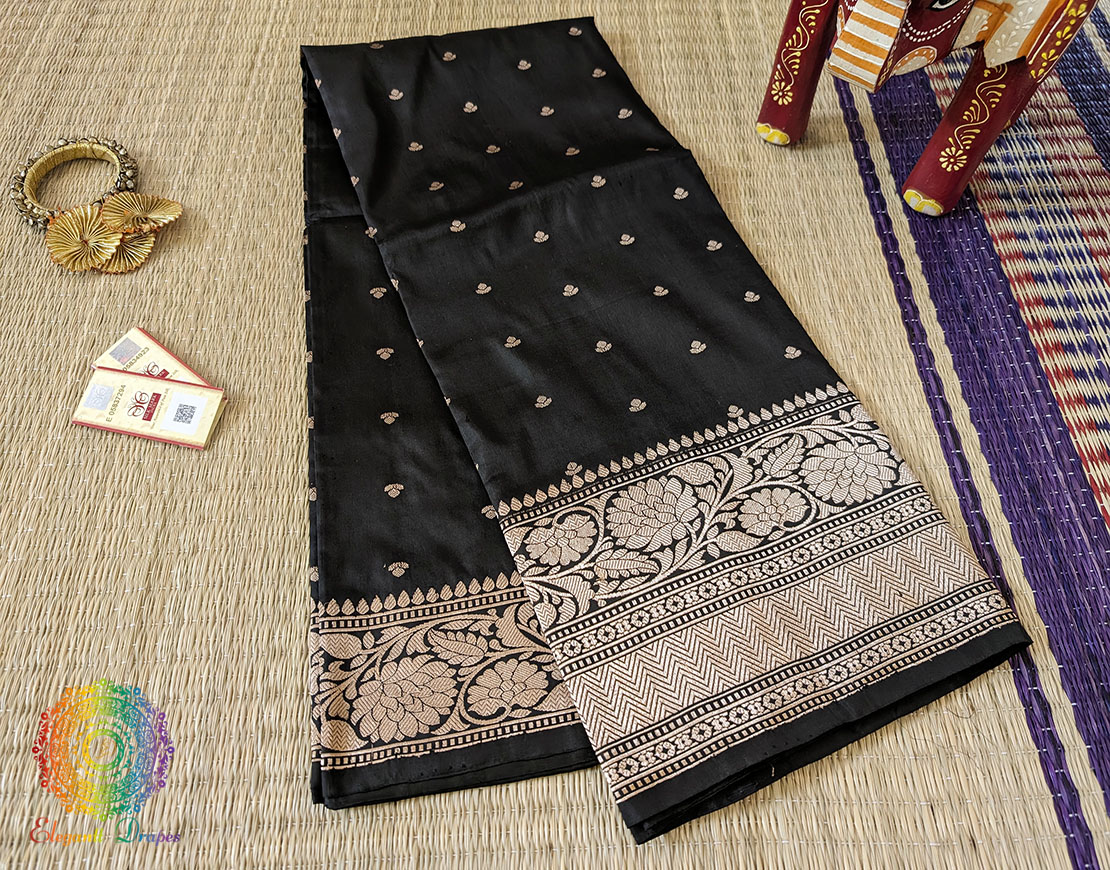 Black Pure Banarasi Handloom Katan Silk Saree