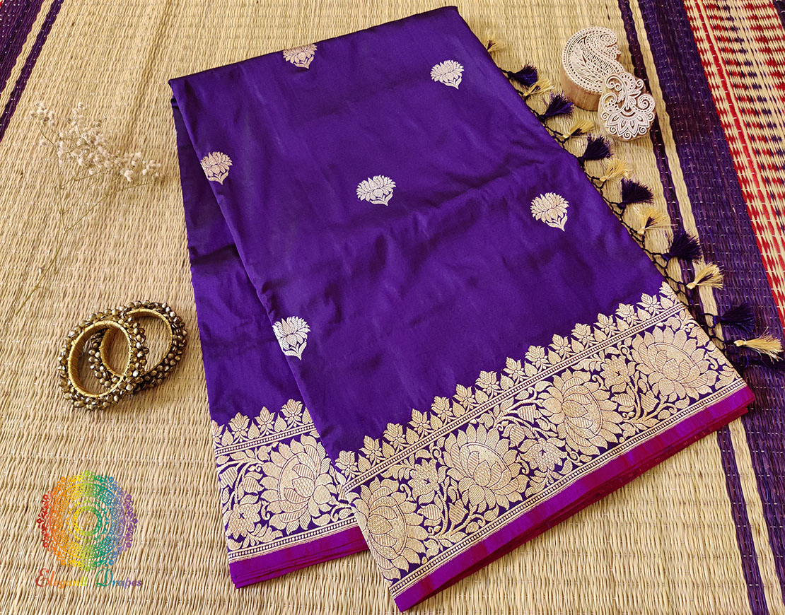Purple Pure Banarasi Katan Silk Jaal Saree