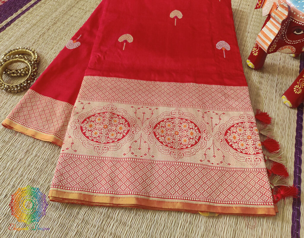 Red Banarasi Handloom Katan Silk Meenakari Saree