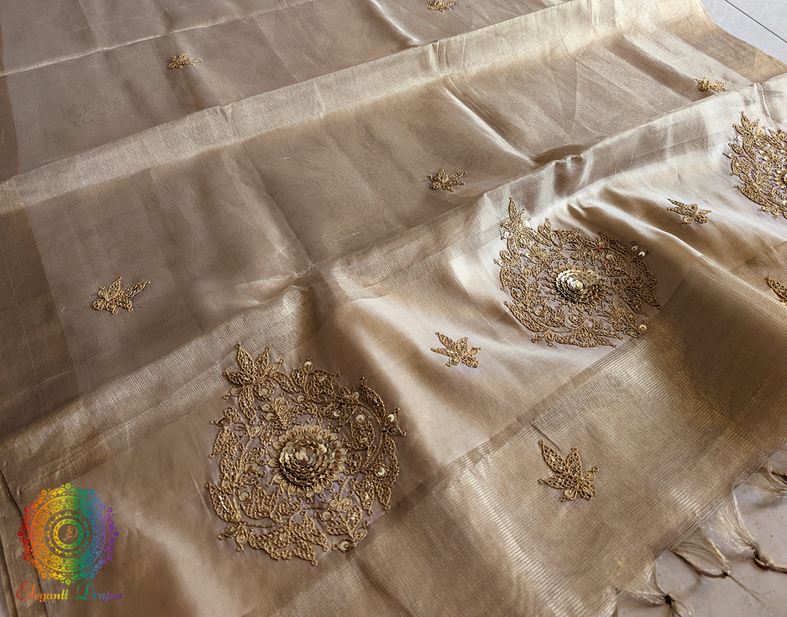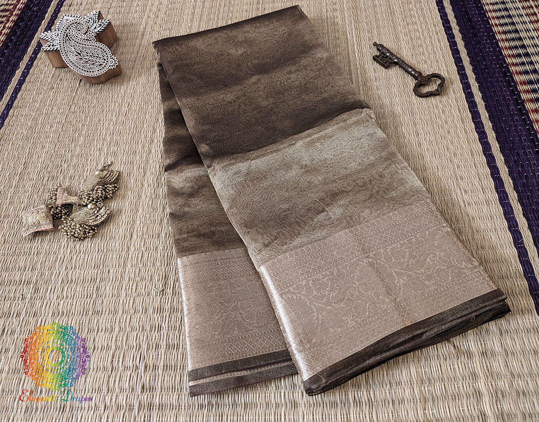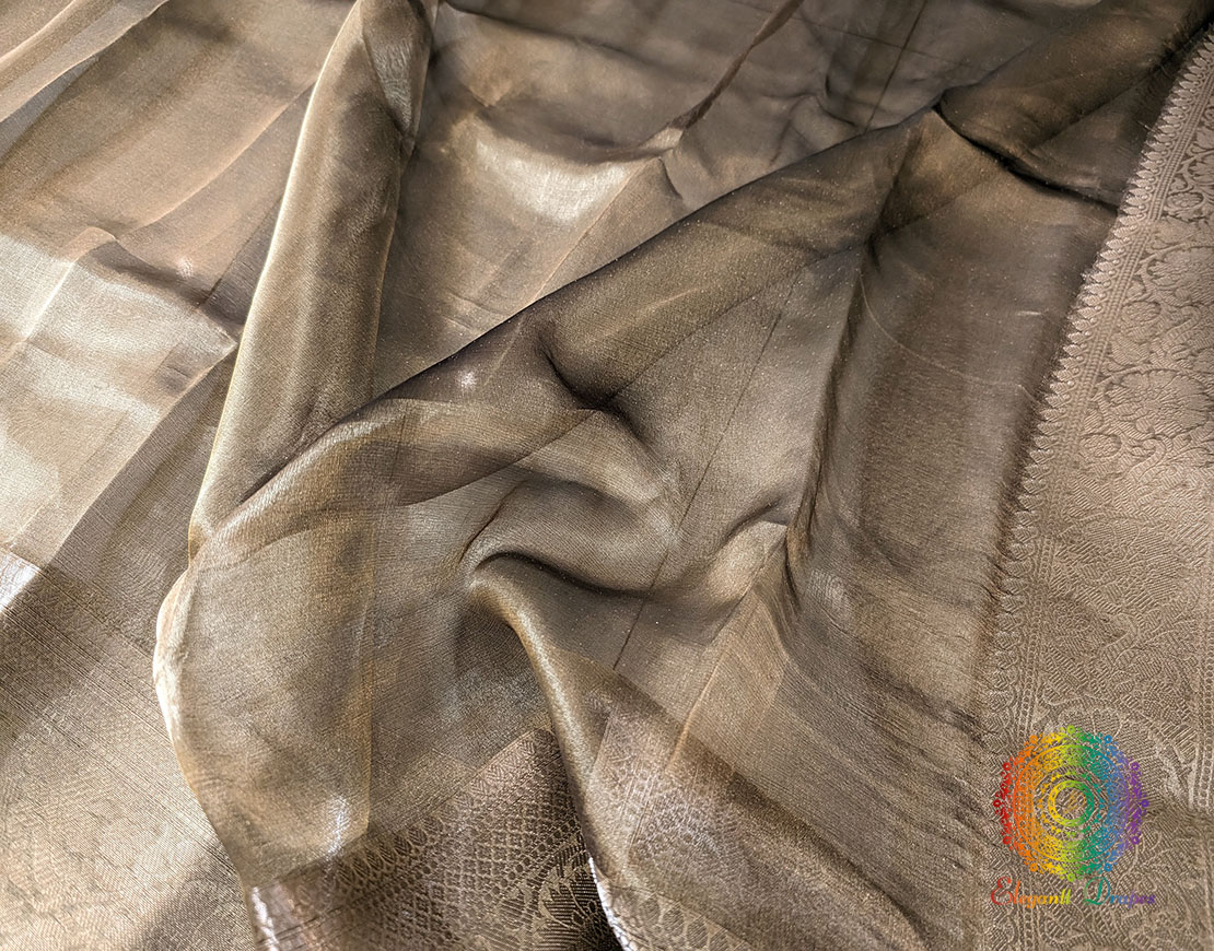 Brown Pure Banarasi Crushed Tissue Silk Saree
