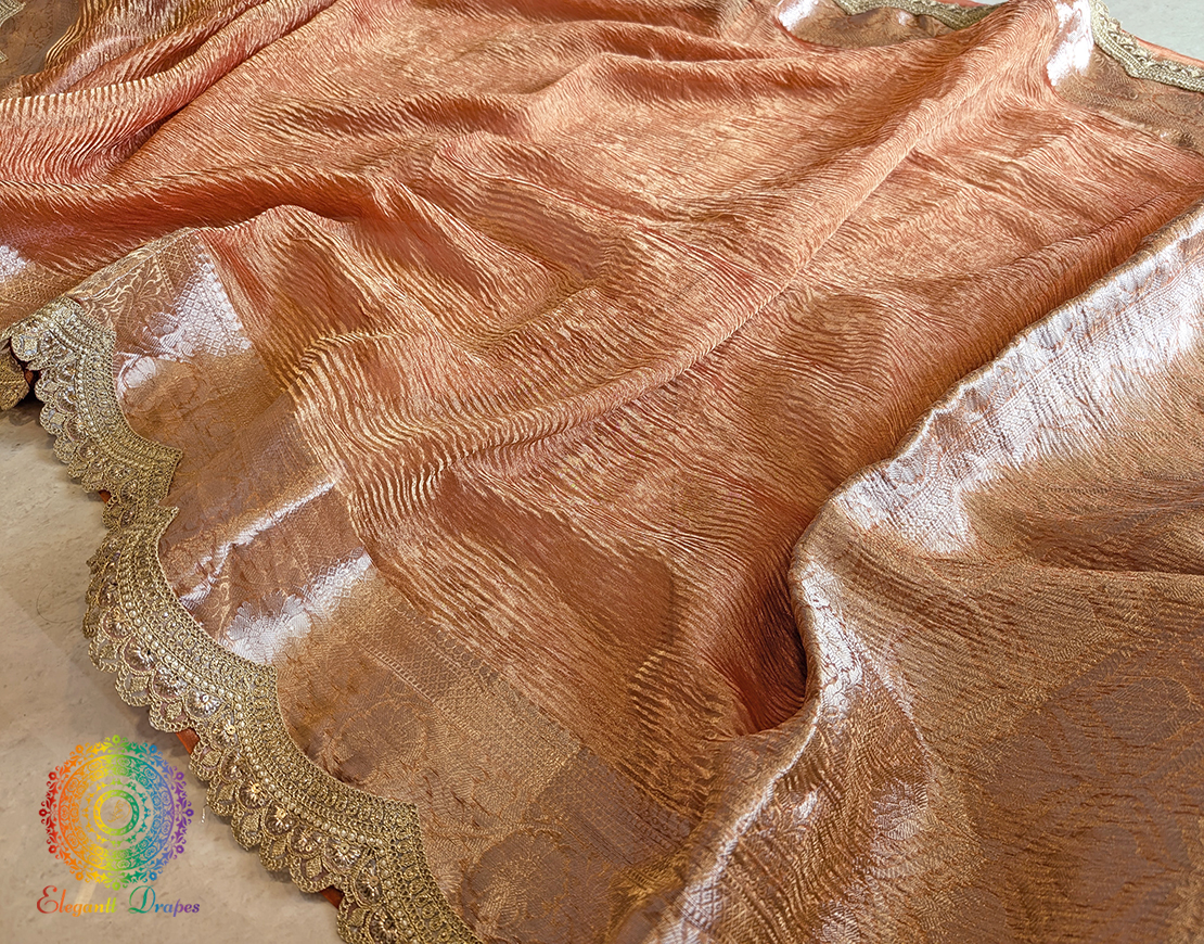 Rust Pure Banarasi Crushed Tissue Silk Saree