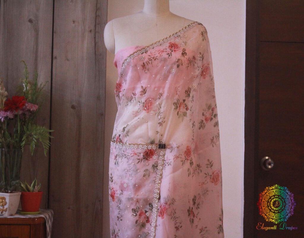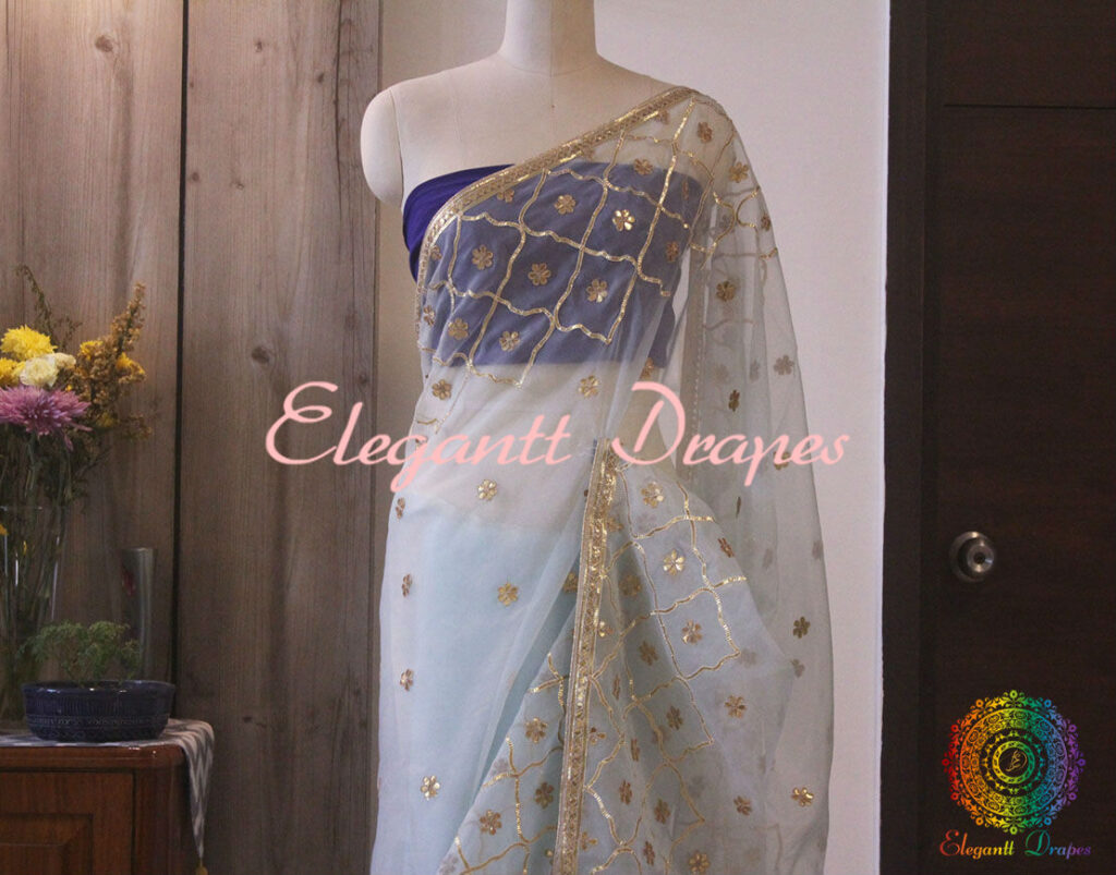Baby Blue Pure Organza Gota Patti Handwork Saree