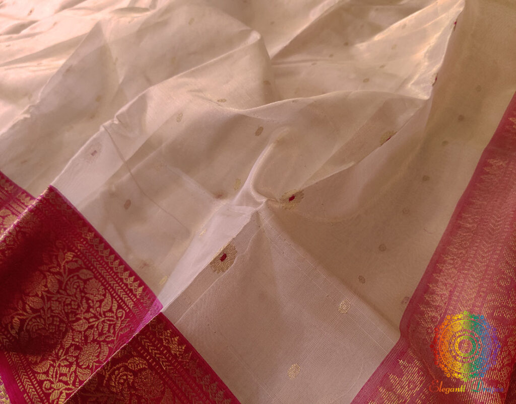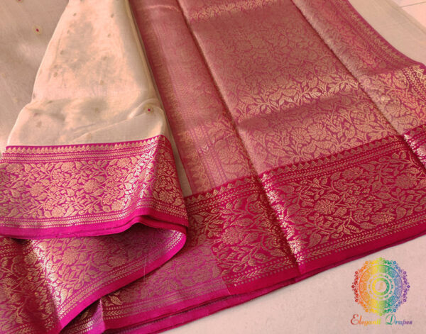 Beige Pure Chanderi Handloom Tissue Silk Saree