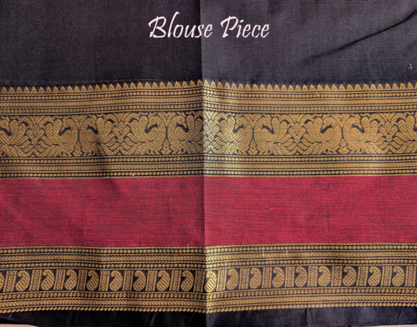 Woven from fine cotton yarns, the saree features a soft, breathable texture — perfect for long wear while maintaining a polished look. The intricate border detailing and subtle color palette make it ideal for cultural functions, office wear, or casual festive dressing.
