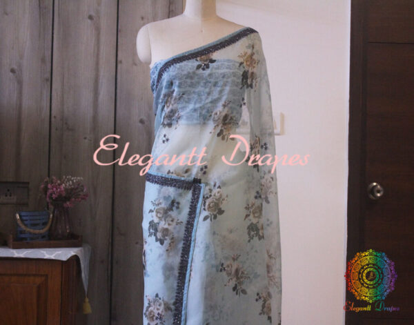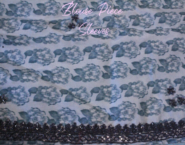 This season, make a style statement in our Organza Collection in beautiful shades. So, Here we have a gorgeous Blue Floral Printed Pure Organza Handwork Saree with beautiful cutdana handwork all over the border. The fabric is pure Handwoven Organza – light as air. So stand out in a crowd and get loads of compliments in our Organza collection. Furthermore, the saree comes with a pure crepe blouse piece.