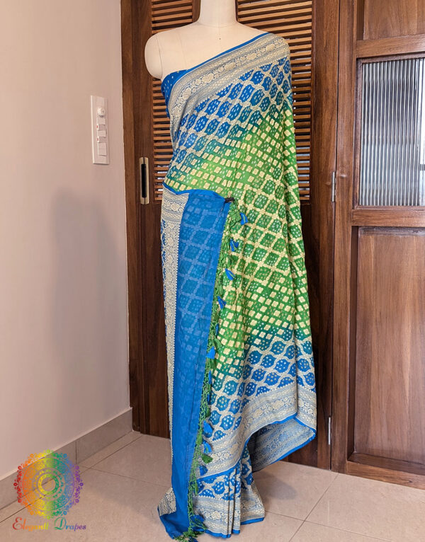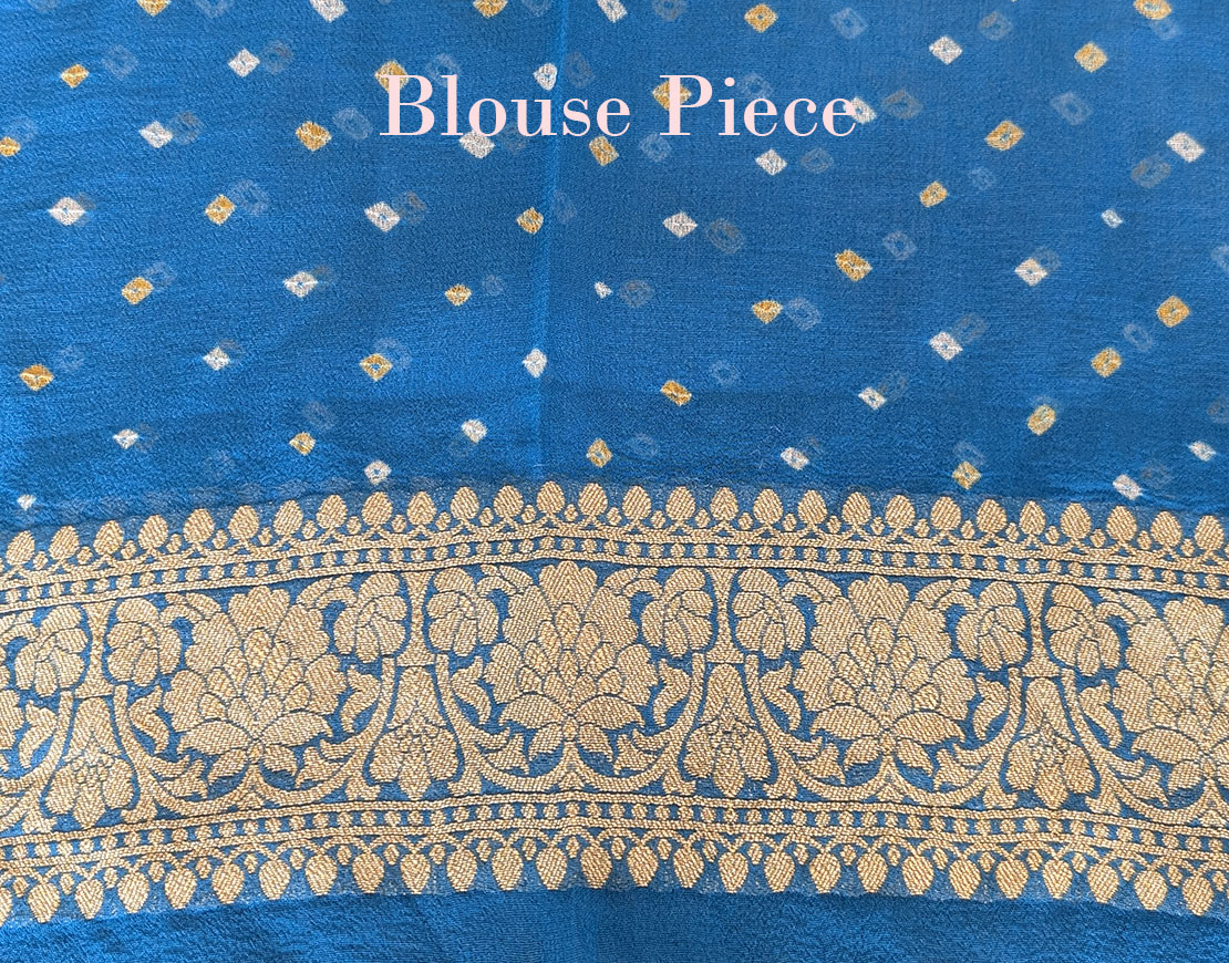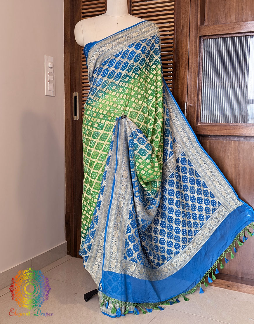 Blue Green Banarasi Bandhani Khaddi Georgette Saree