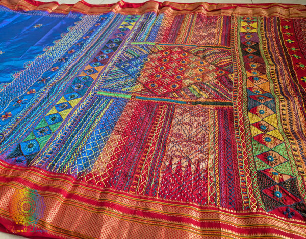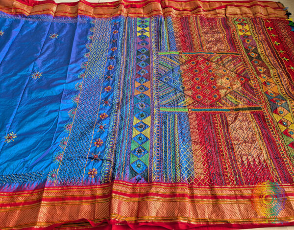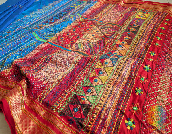 Blue Red Lambani Handwork Pure Ilkal Silk Saree