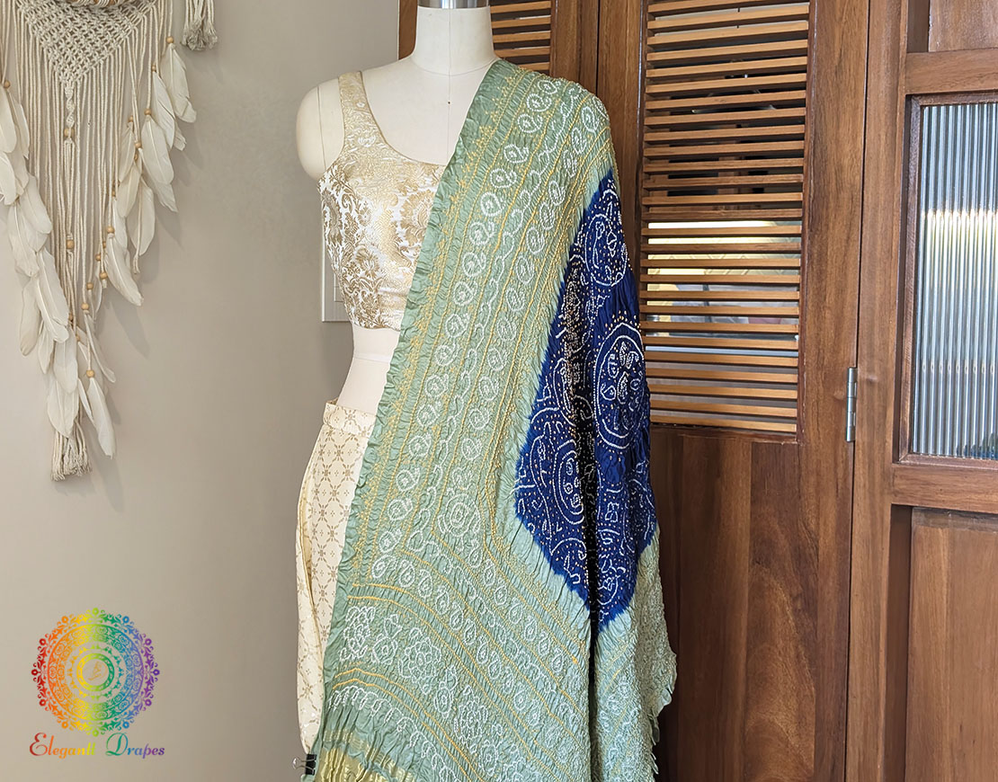 Blue Sea Green Gaji Silk Bandhani Dupatta