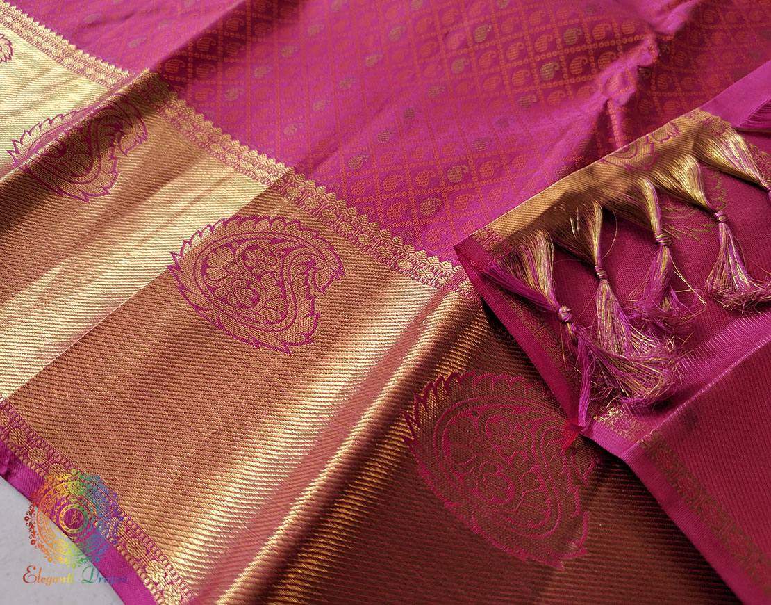Bridal Pink Pure Kanjivaram Handloom Silk Saree