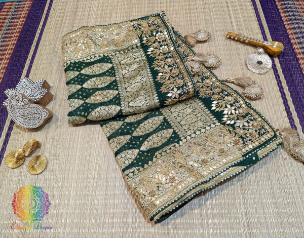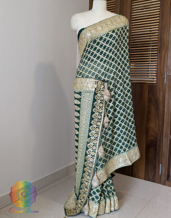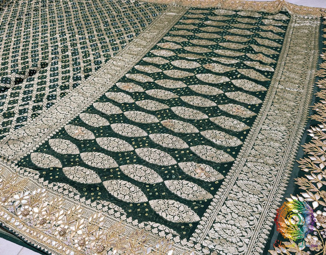 Green Banarasi Georgette Bandhani Gota Patti Saree