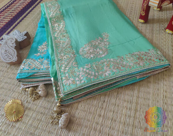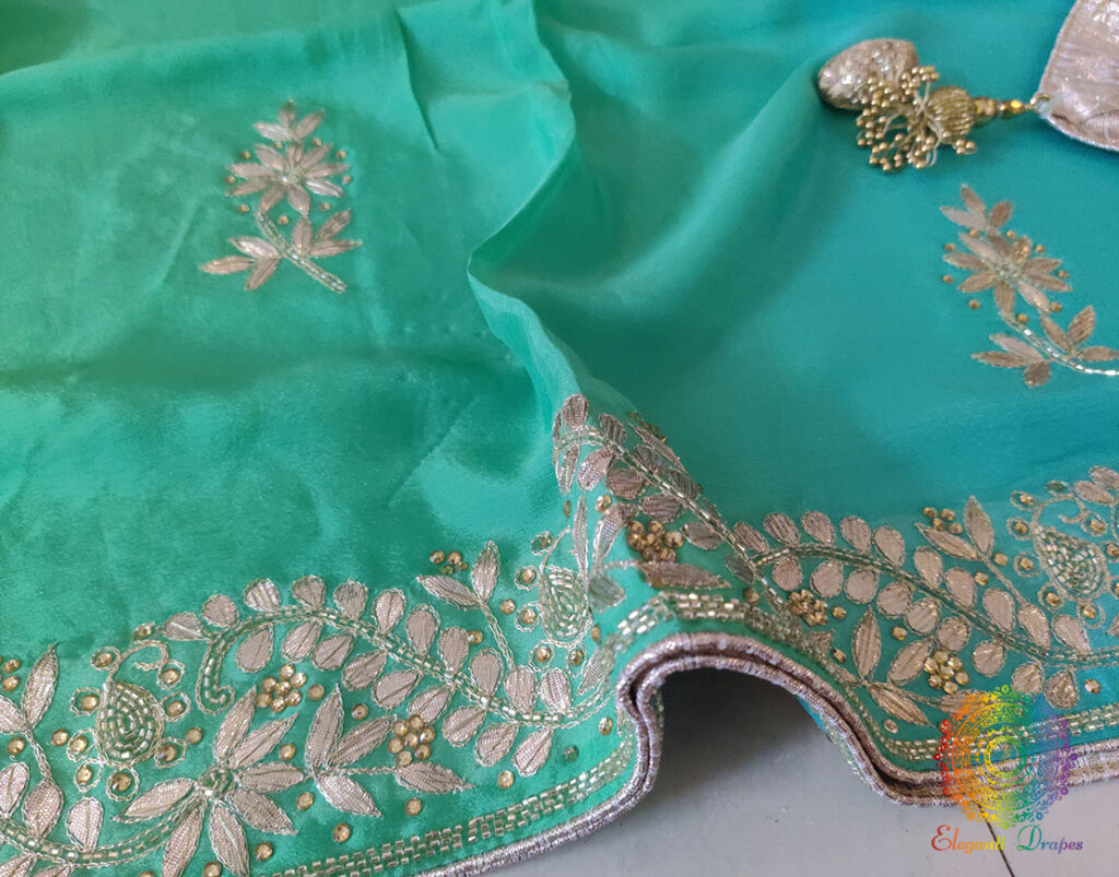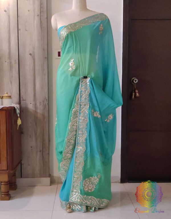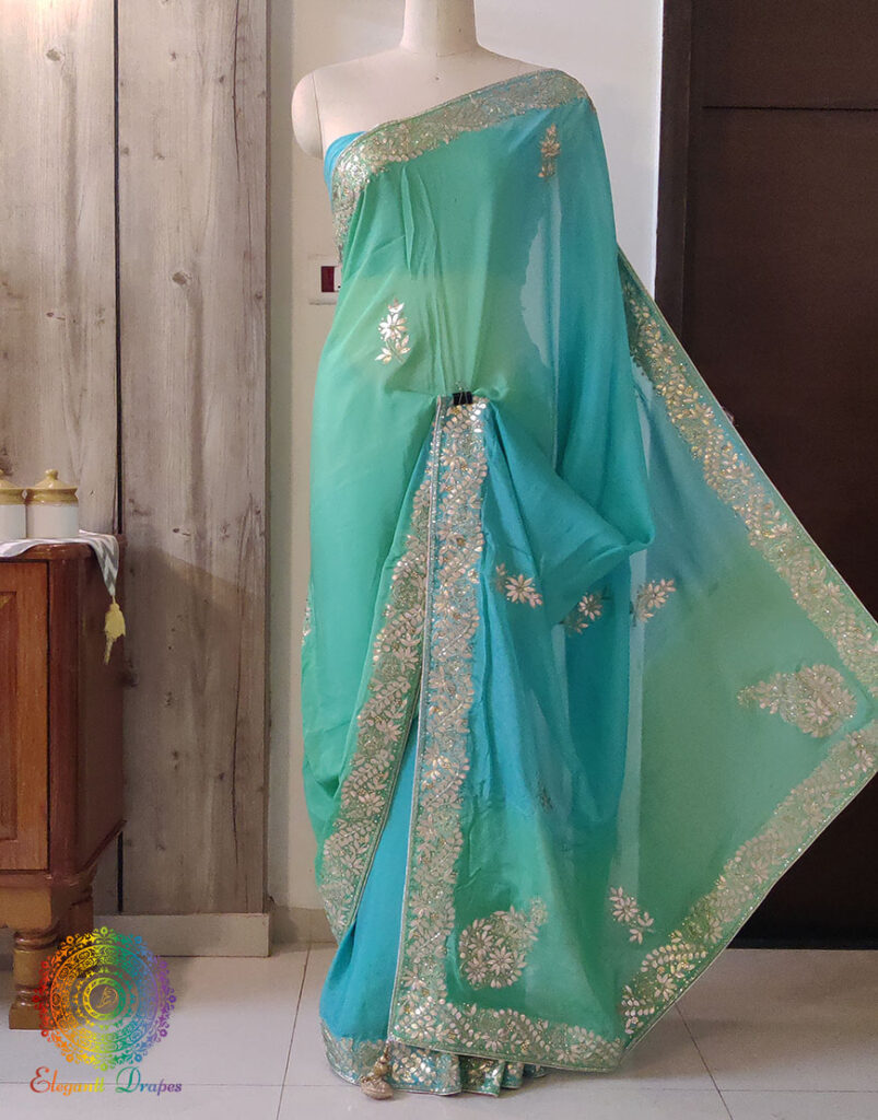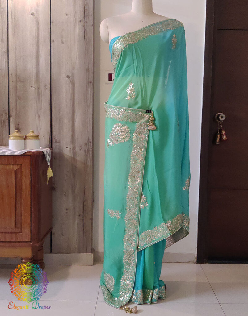 Green Blue Shaded Chinon Crepe Gota Patti Work Saree