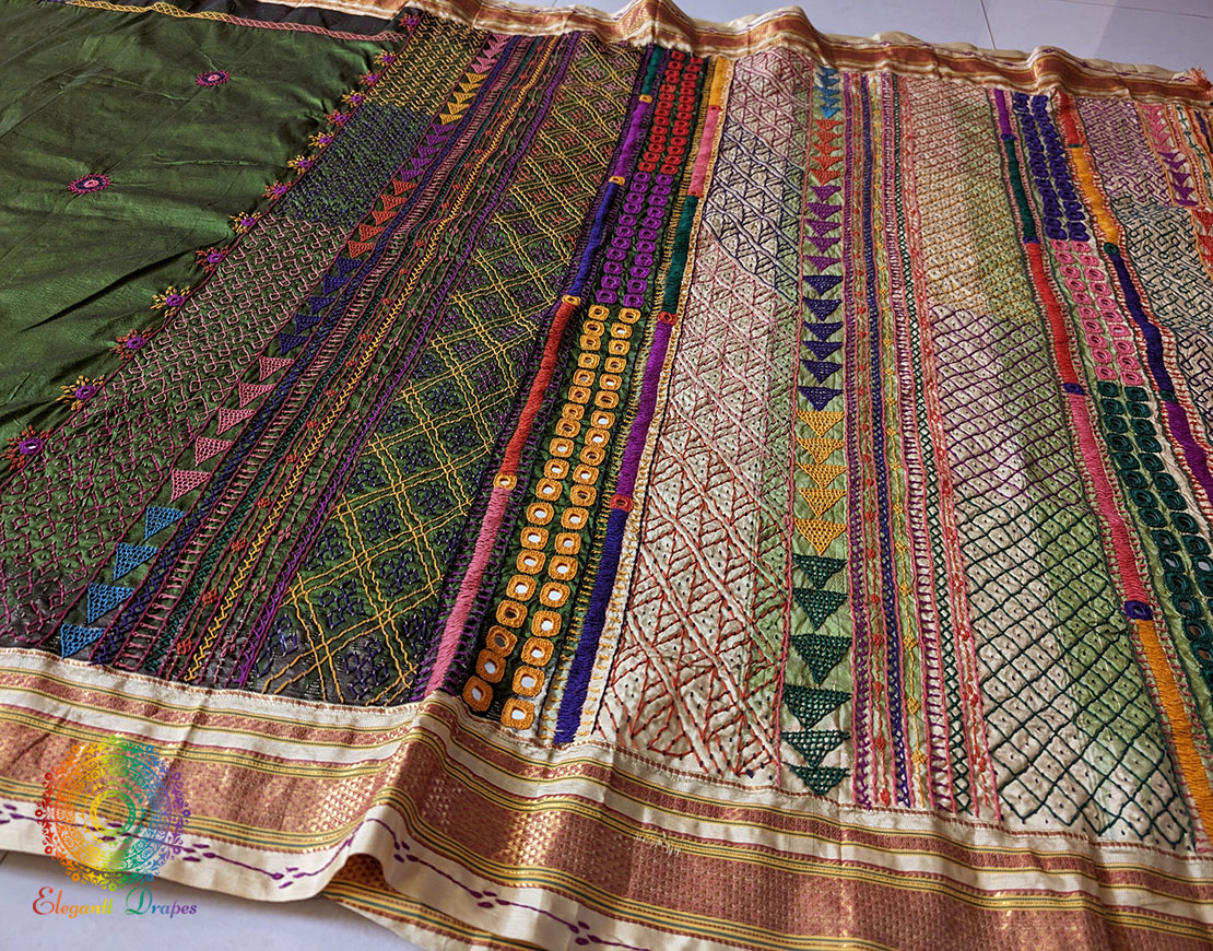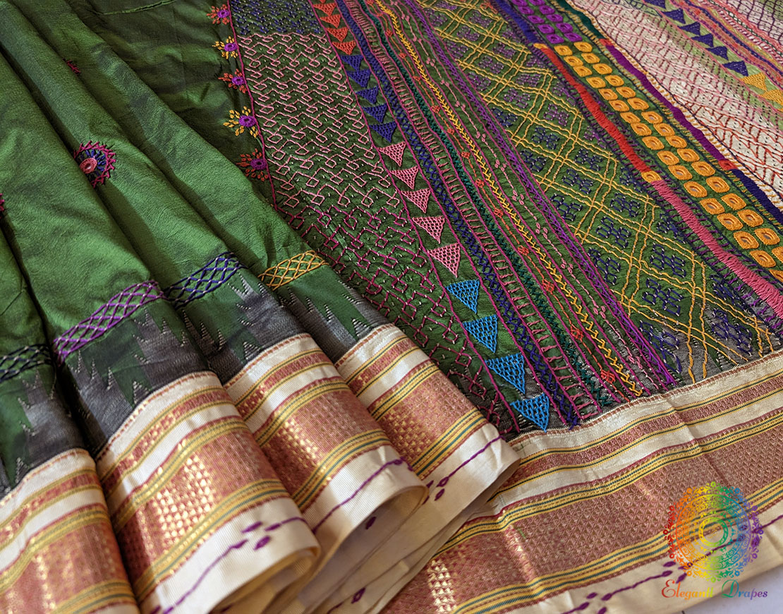 Green Pure Ilkal Silk Lambani Handwork Saree