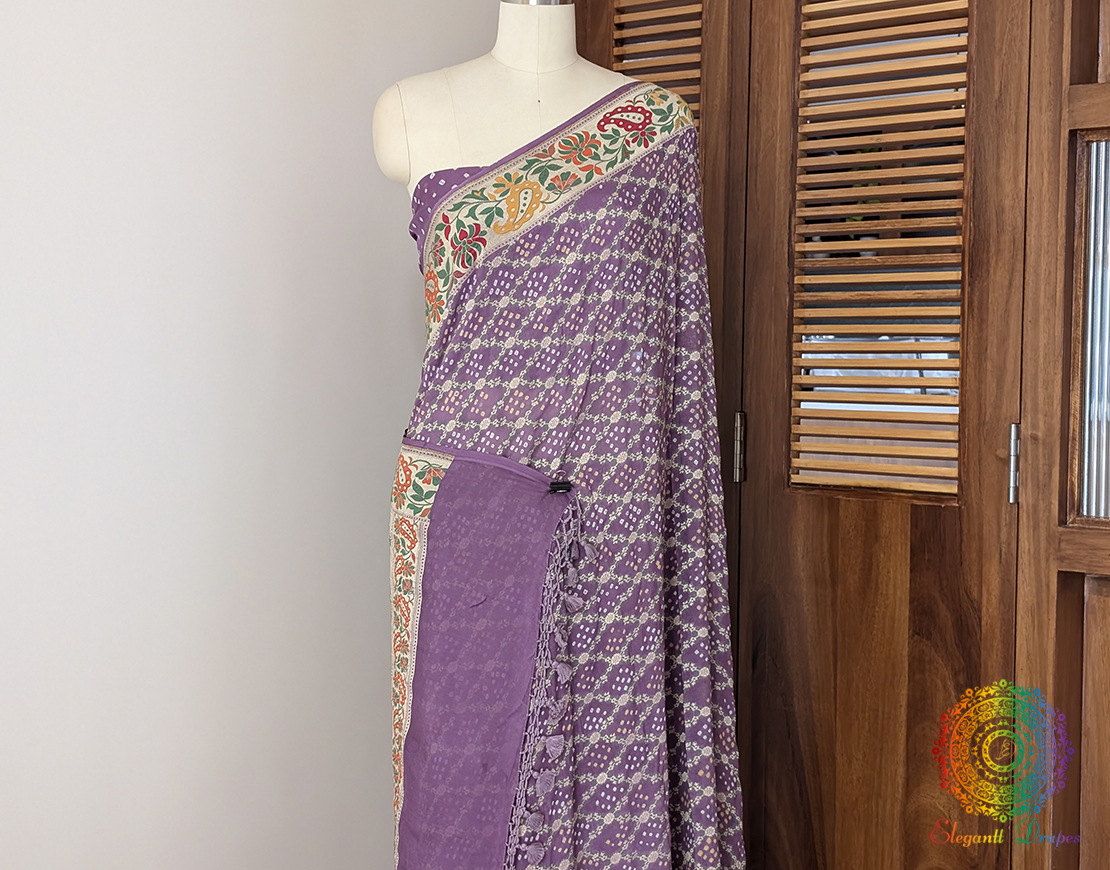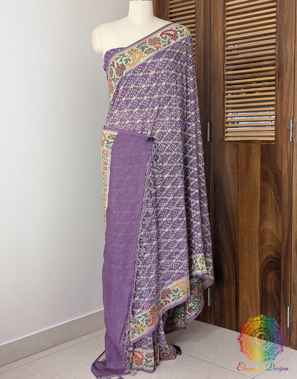 Lavender Pure Banarasi Georgette Meenakari Bandhani Saree