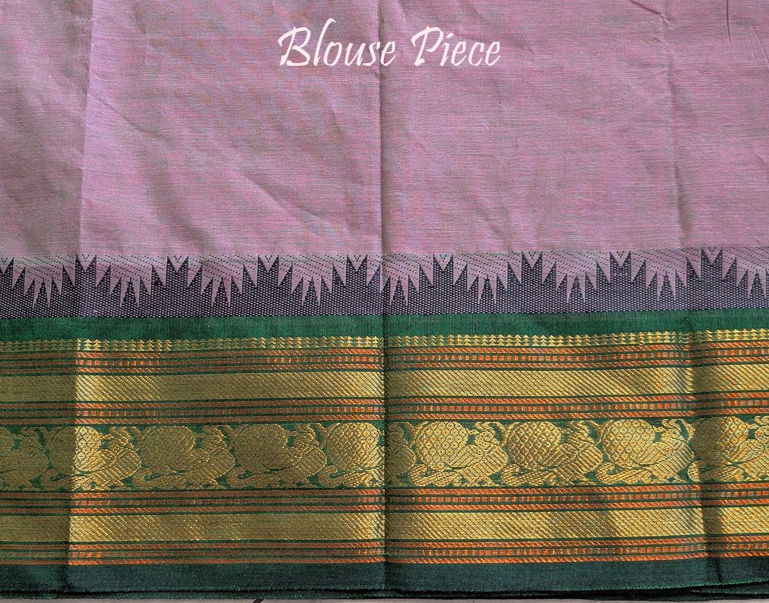 This Lilac Pure Kanchi Cotton Saree is handwoven in the heritage looms of Tamil Nadu, blending the beauty of simplicity with the richness of South Indian craftsmanship.