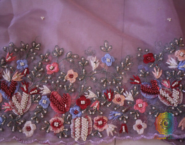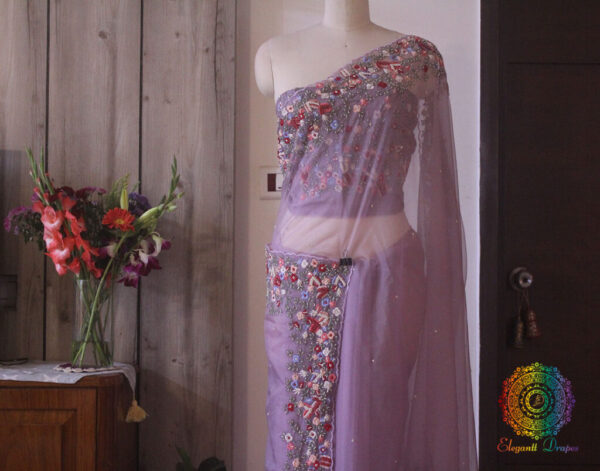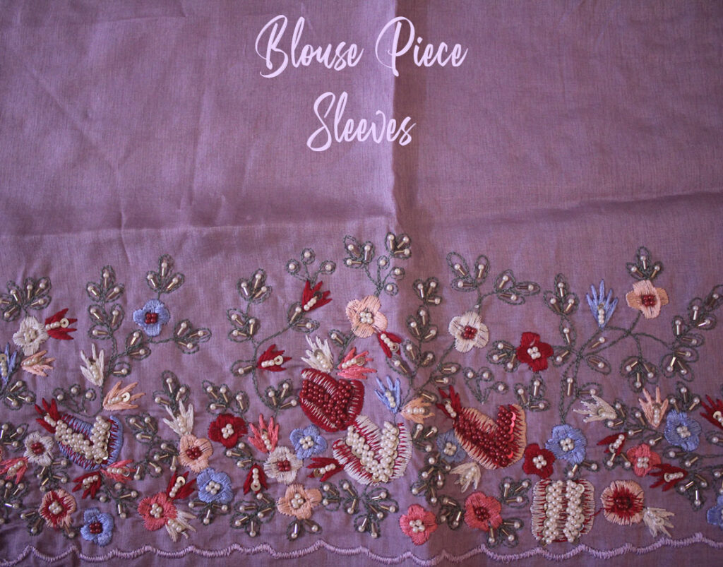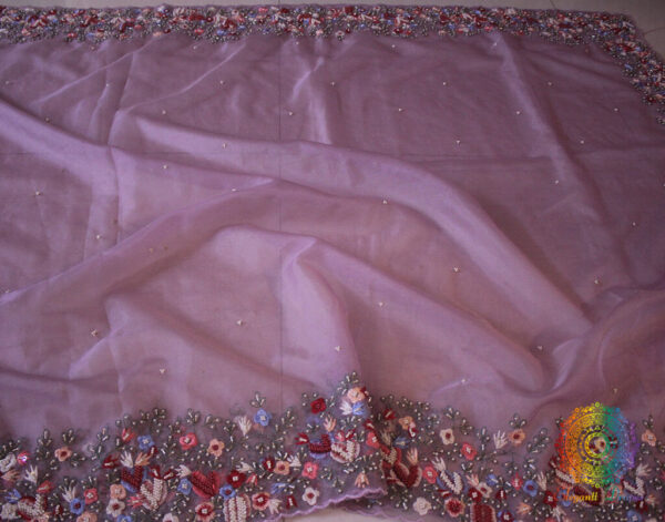 Lilac Pure Organza Silk Hand Embroidered Saree