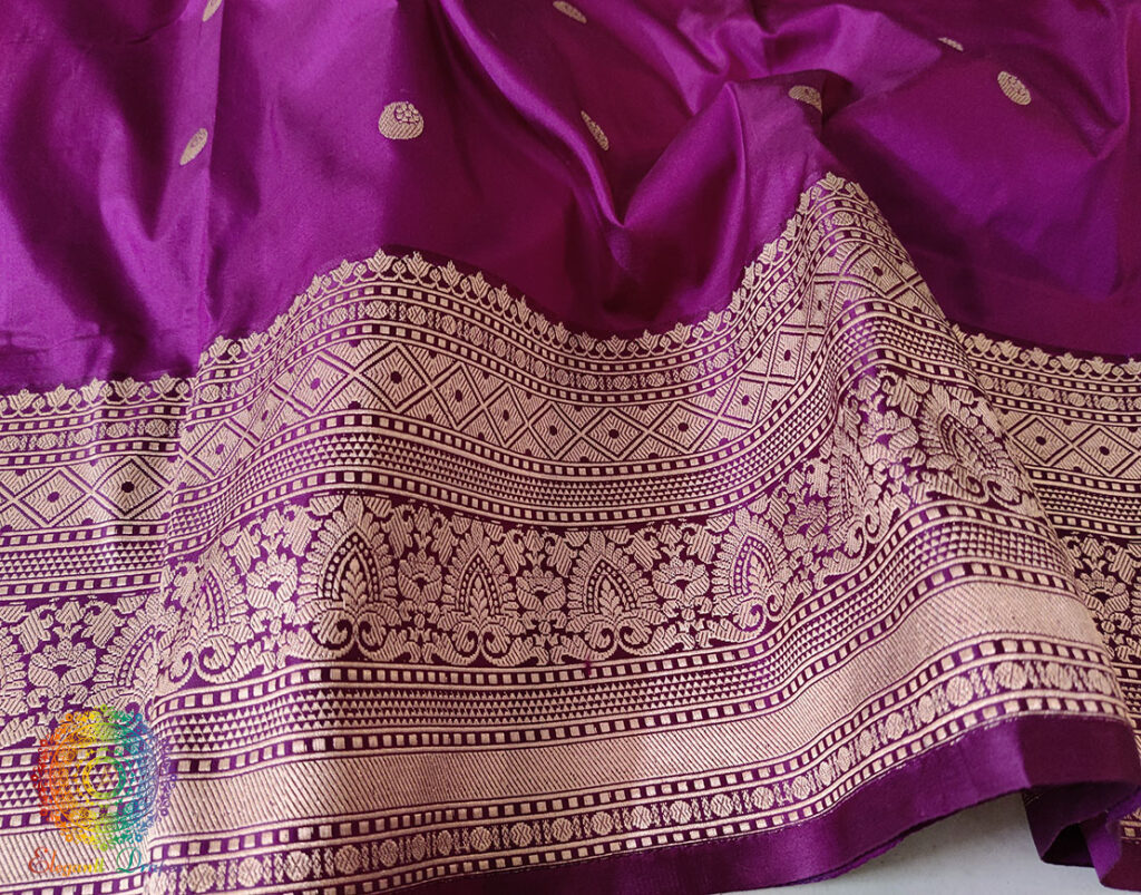 A heirloom of Banaras – Katan Silk Saree. These are handloom sarees which takes 2-3 weavers and more than a month to weave a single saree. Furthermore the motifs are inspired my the Mughal era.