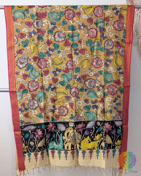 Mustard Pen Kalamkari Bangalore Silk Dupatta
