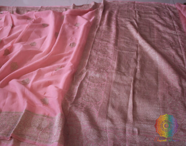 Pale Peach Banarasi Handloom Georgette Kadhuwa Saree