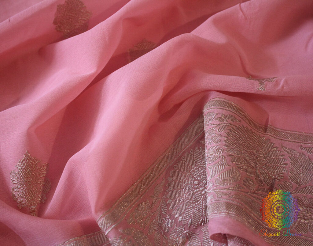 Banarasi Khaddi Georgete is a very soft and drapy fabric.