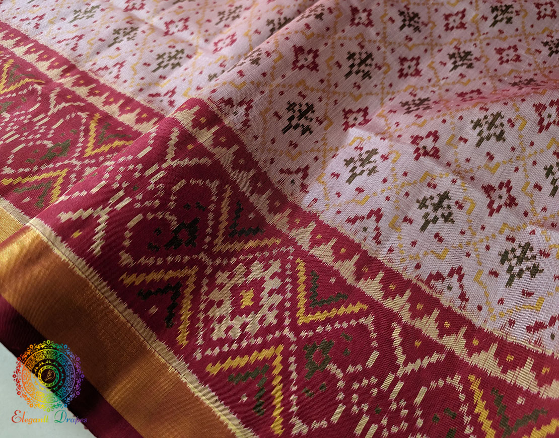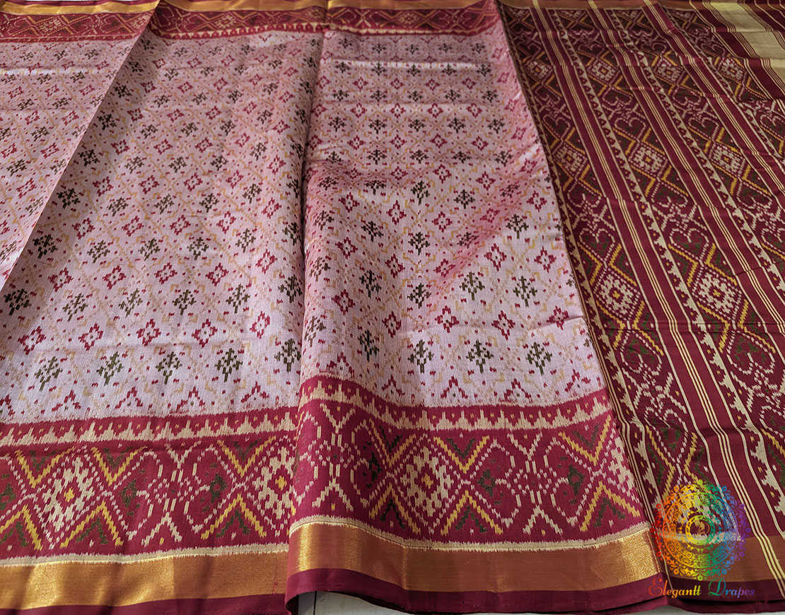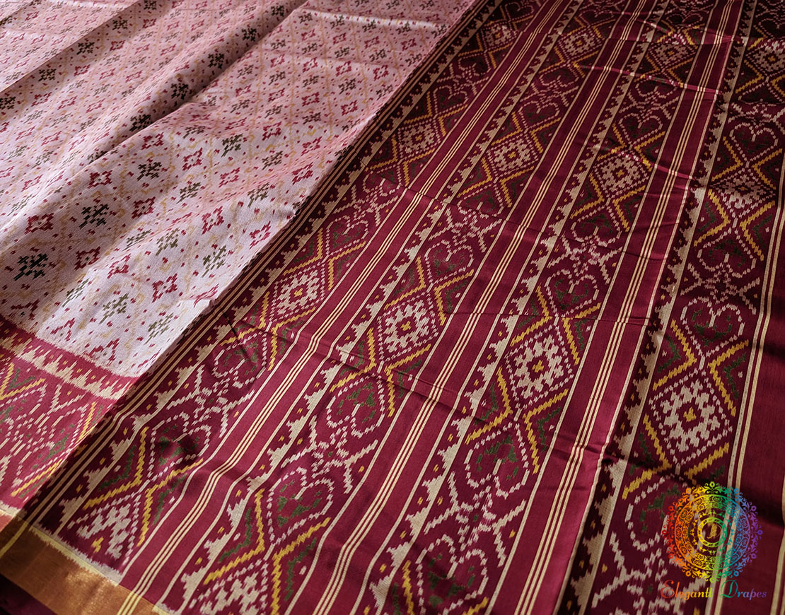 Pale Pink Pure Mulberry Silk Rajkoti Patola Saree