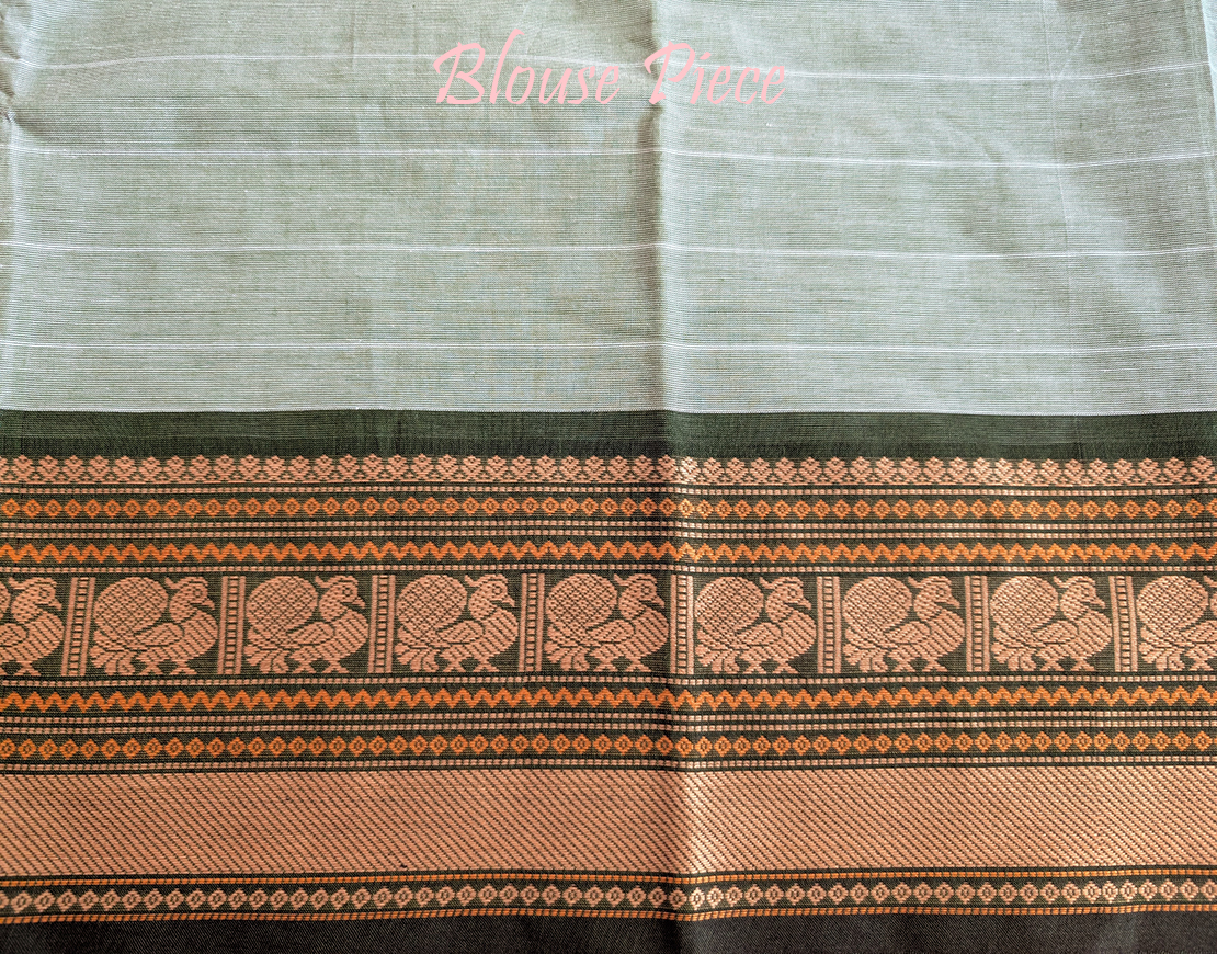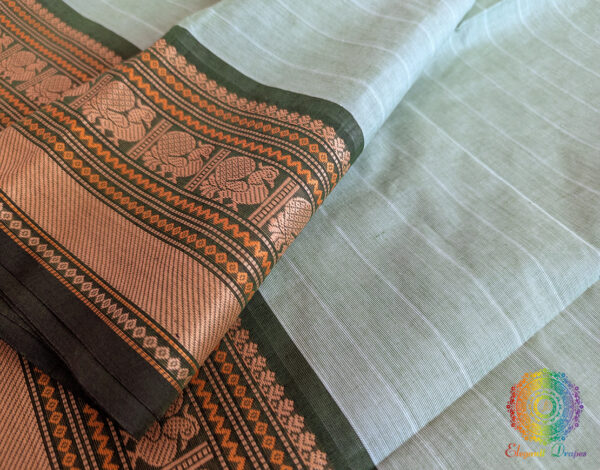 Woven from fine cotton yarns, the saree features a soft, breathable texture — perfect for long wear while maintaining a polished look. The intricate border detailing and subtle color palette make it ideal for cultural functions, office wear, or casual festive dressing.