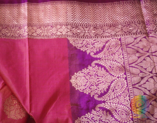 A heirloom of Banaras – Katan Silk Saree. These are handloom sarees which takes 2-3 weavers and more than a month to weave a single saree. Furthermore the motifs are inspired my the Mughal era.