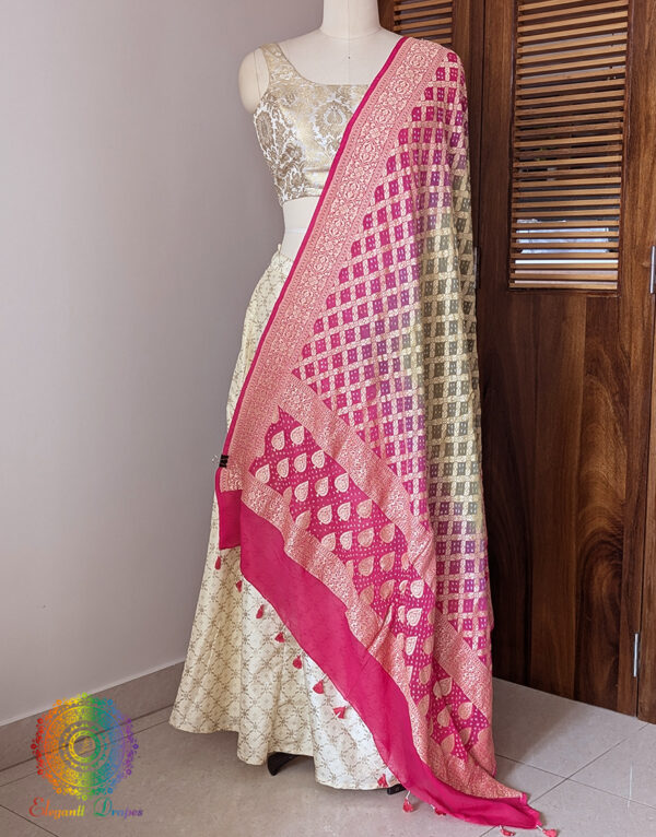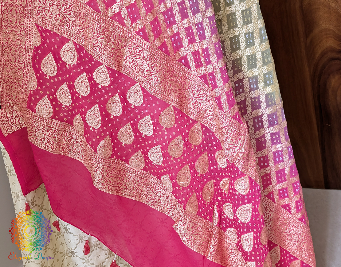 Pink Olive Banarasi Bandhani Georgette Dupatta