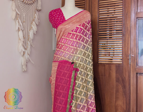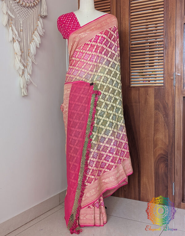 Pink Olive Banarasi Bandhani Khaddi Georgette Saree