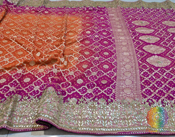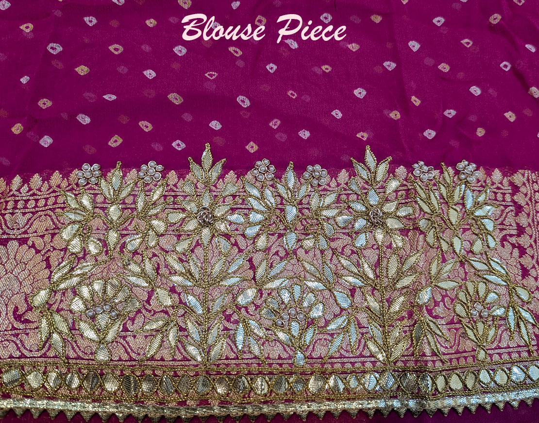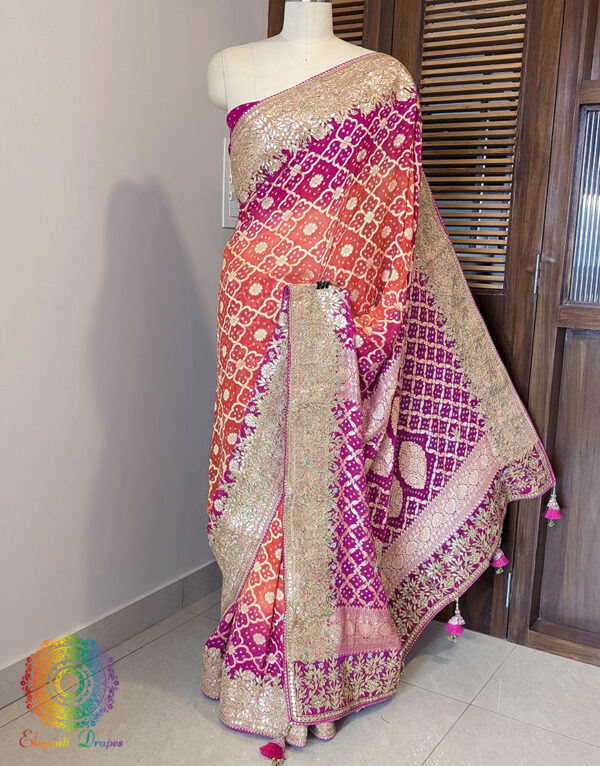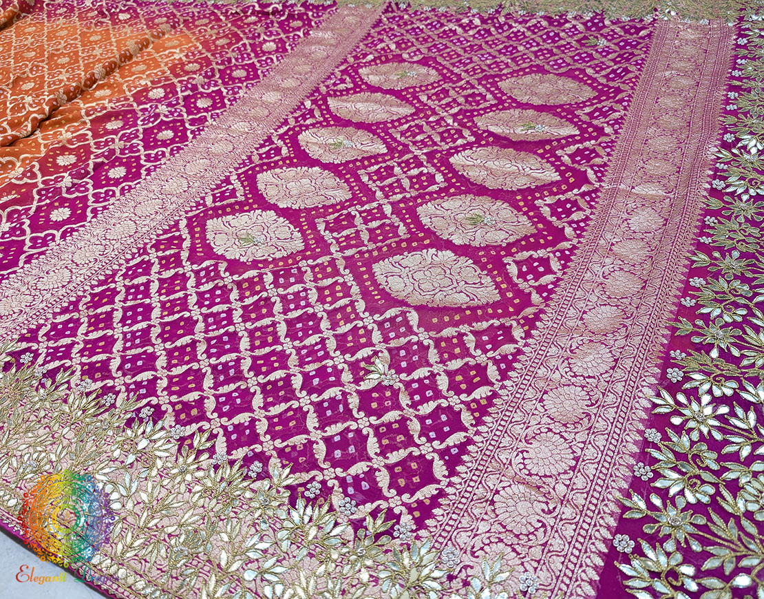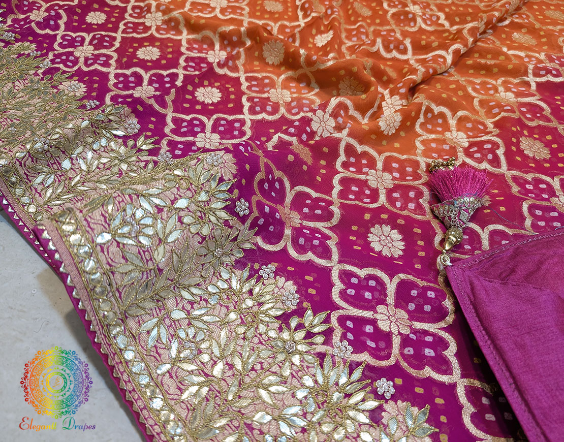 Pink Orange Banarasi Georgette Bandhani Gota Patti Saree