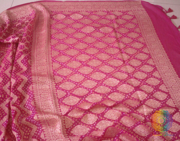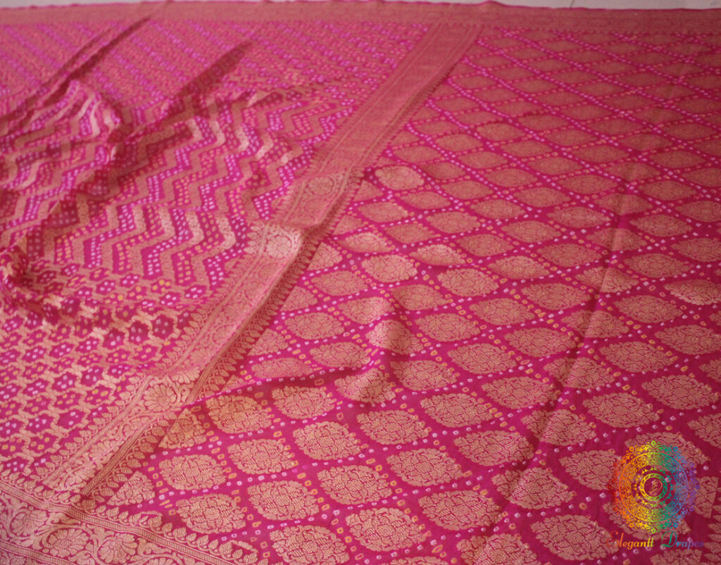 Pink Pure Banarasi Khaddi Georgette Bandhani Saree