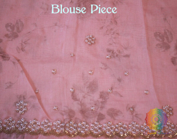 This season, make a style statement in our Handloom Organza Digital Printed Collection in pastel shades. So, Here we have a gorgeous Pink Pure Handloom Organza Digital Print Saree with beautiful pearl and zardozi handwork all over the border. The fabric is pure Handwoven Organza – light as air. So stand out in a crowd and get loads of compliment in our Organza collection. Furthermore, the saree comes with a pure crepe blouse.