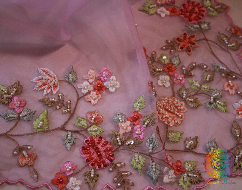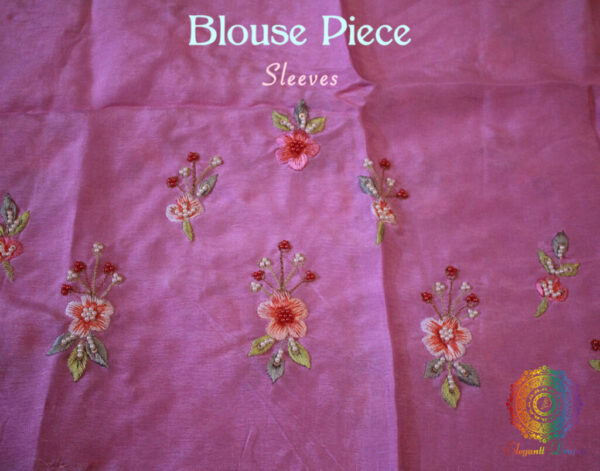 This season, make a style statement in our Organza Collection in beautiful shades. So, Here we have a gorgeous Pink Pure Organza Silk Hand Embroidered Saree with beautiful resham handwork all over the border. The fabric is pure Handwoven Organza – light as air. So stand out in a crowd and get loads of compliment in our Organza collection. Furthermore, the saree comes with an organza blouse piece.