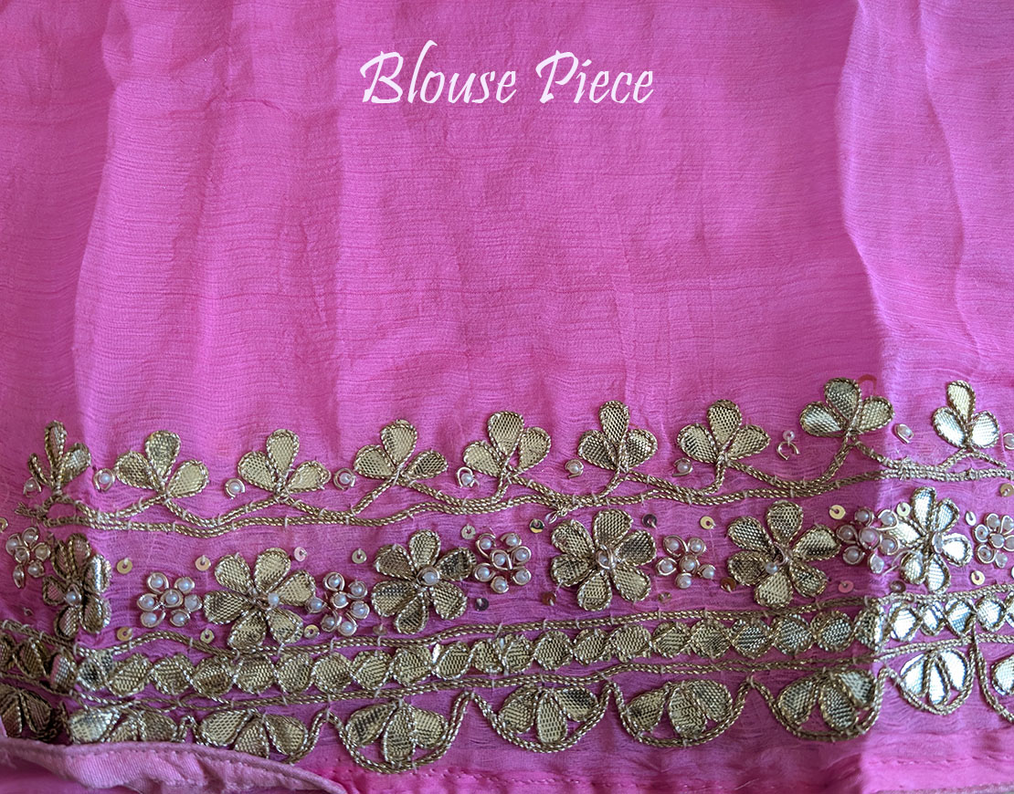 Pink Purple Chinon Bandhej Leharia Gota Patti Saree