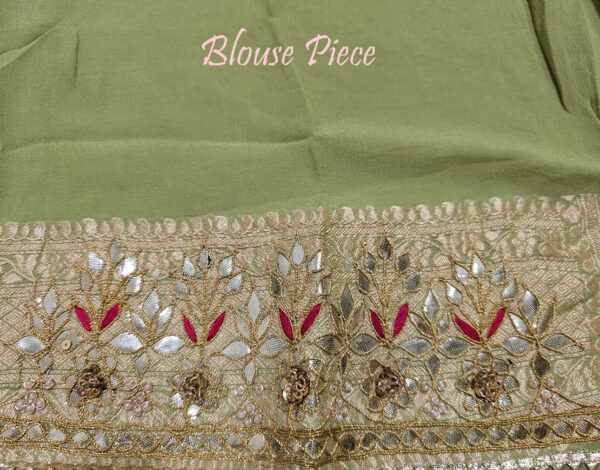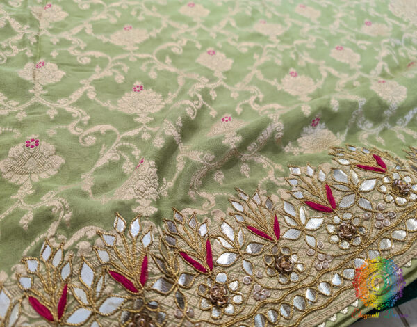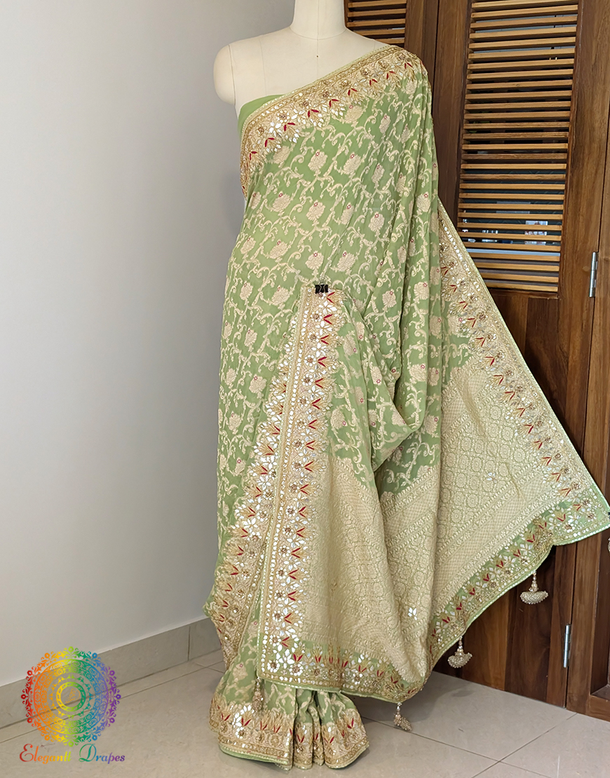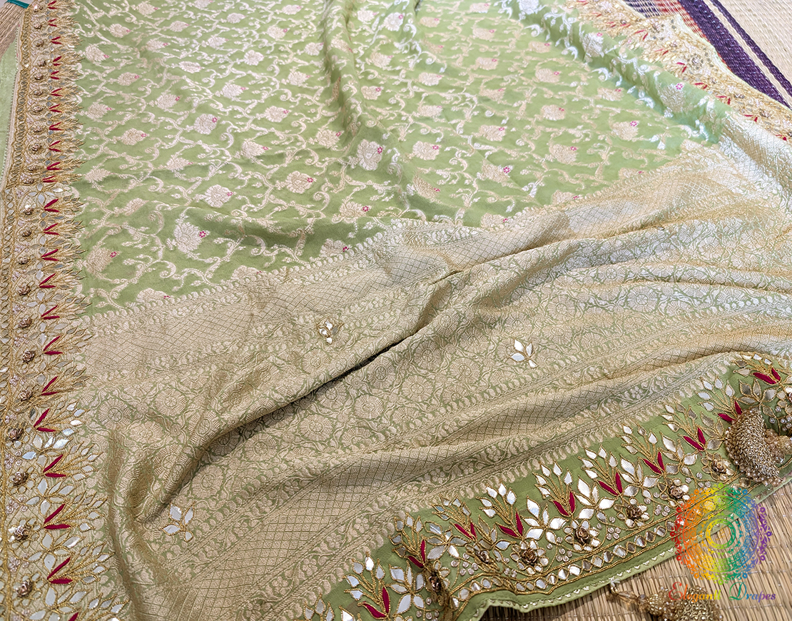 Pista Green Banarasi Pure Georgette Gota Patti Saree