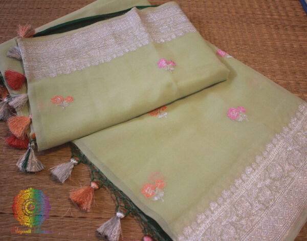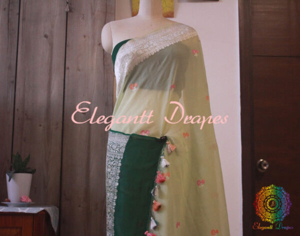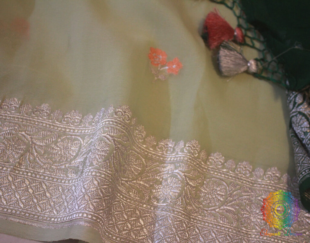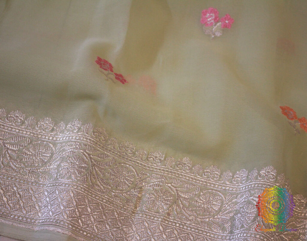 Pistachio Green Banarasi Khaddi Georgete Meenakari Saree