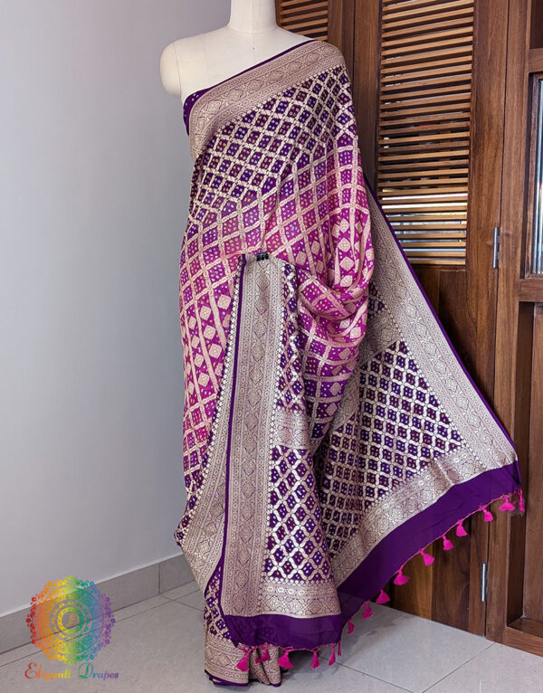 Purple Pink Banarasi Bandhani Khaddi Georgette Saree