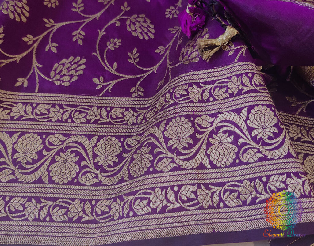 Purple Pure Banarasi Katan Silk Floral Jaal Saree
