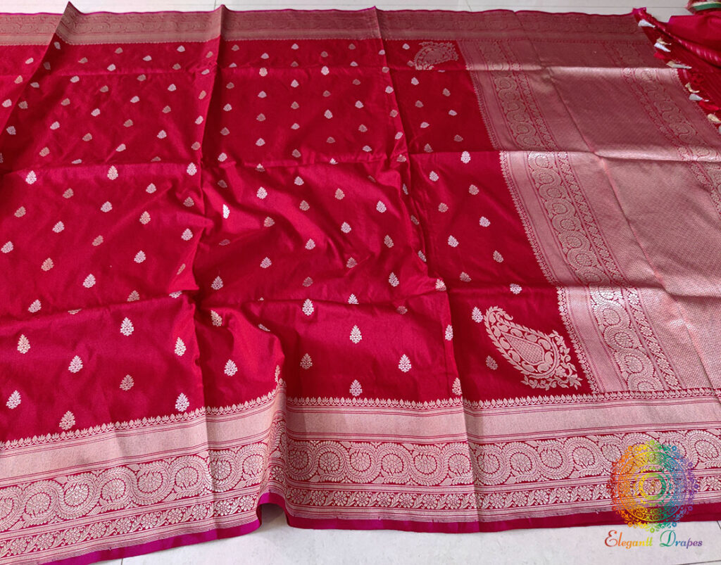 Red Banarasi Handloom Pure Katan Silk Konia Saree