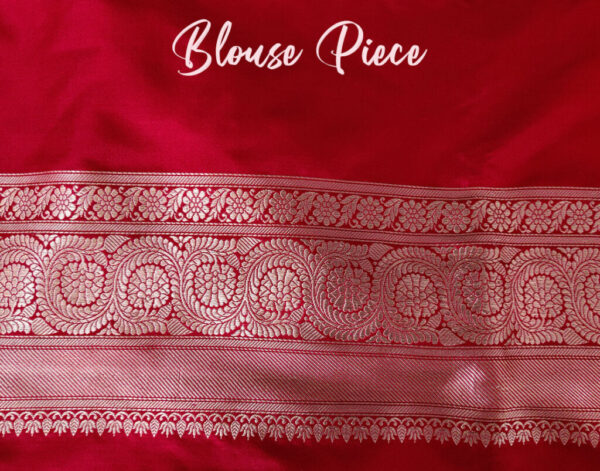 A fabulous saree in Pure Silk. Thus here we bring to you a Red Banarasi Handloom Pure Katan Silk Konia Saree with silver and golden Zari weaving all over. Moreover the fabric is pure silk/pattu. Thus we would say a not to be missed saree. Also, this Red Banarasi Handloom Pure Katan Silk Konia Saree comes with a pure silk blouse piece.