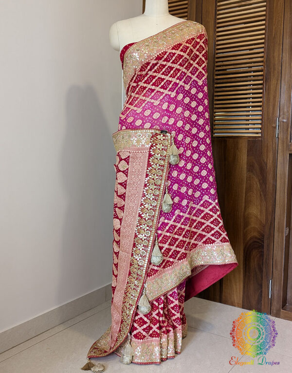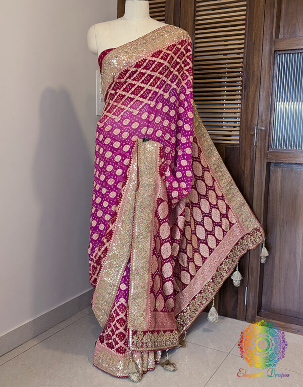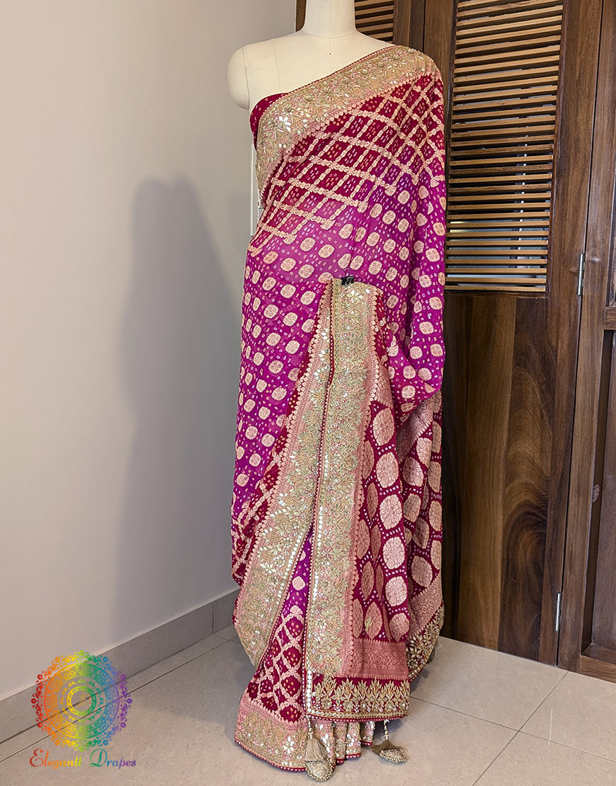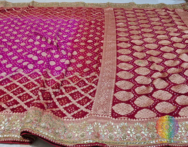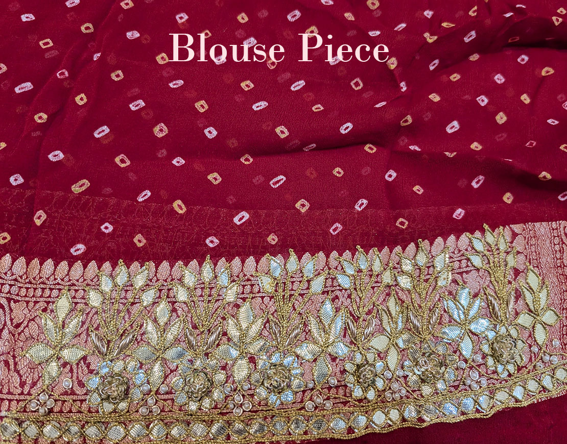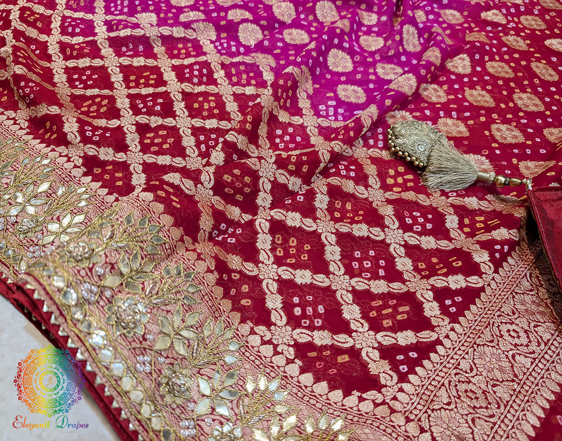 Red Pink Banarasi Georgette Bandhani Gota Patti Saree