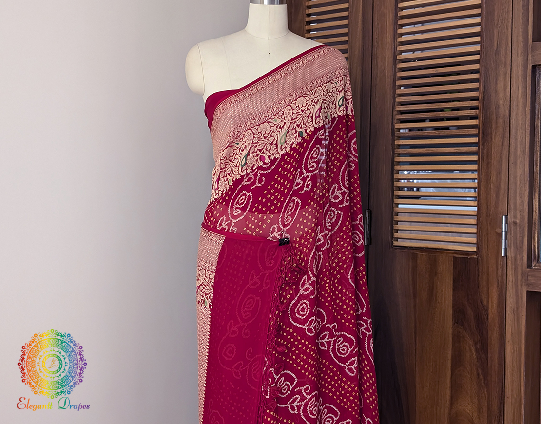 Red Pure Banarasi Georgette Meenakari Bandhani Saree