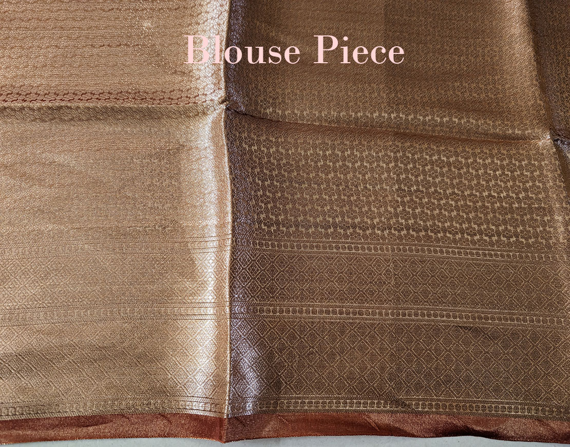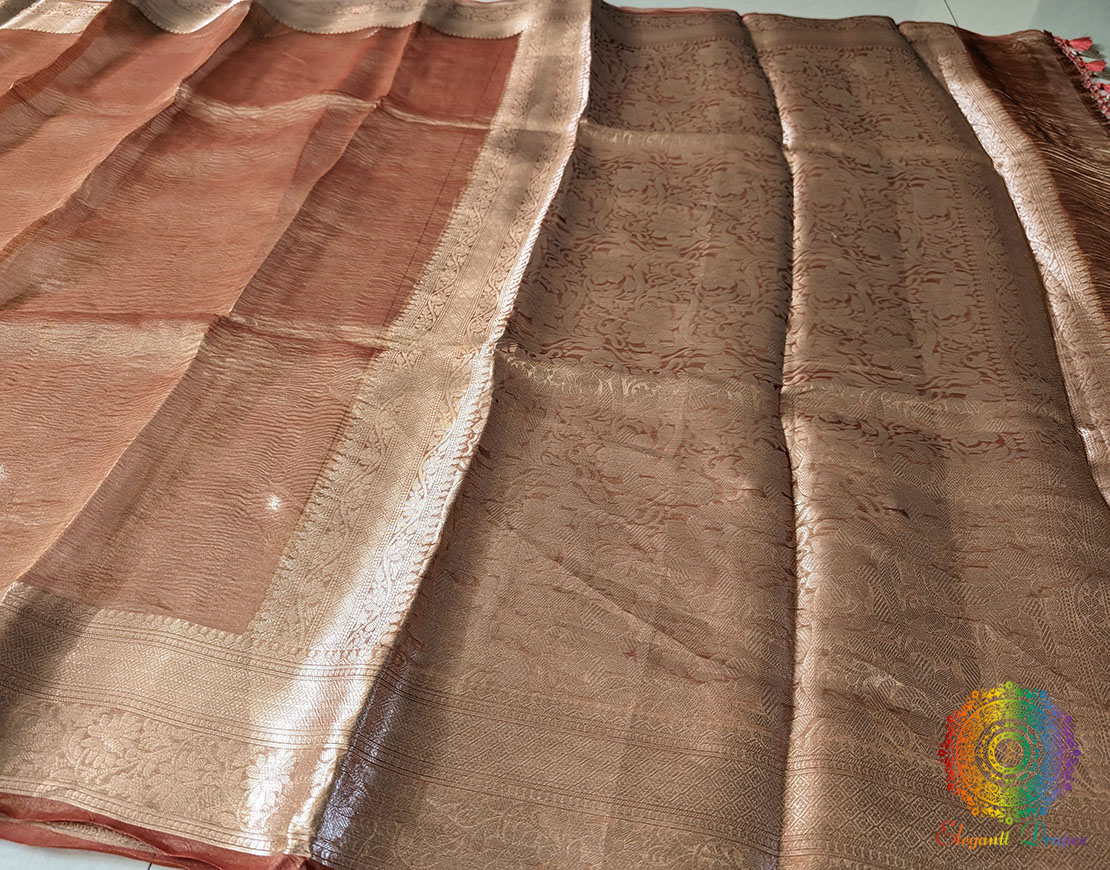 Rust Pure Banarasi Crushed Tissue Silk Saree