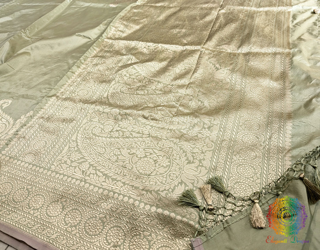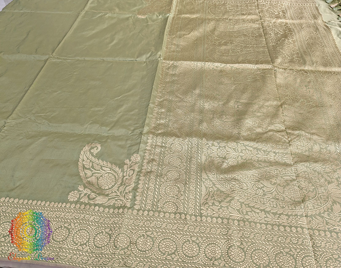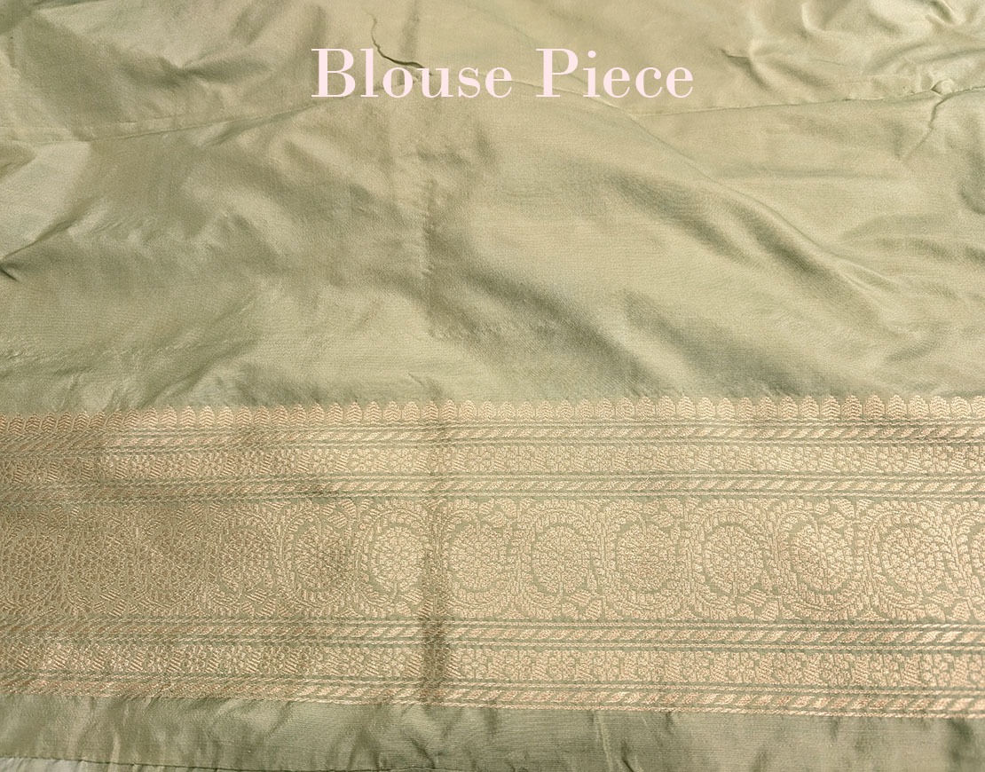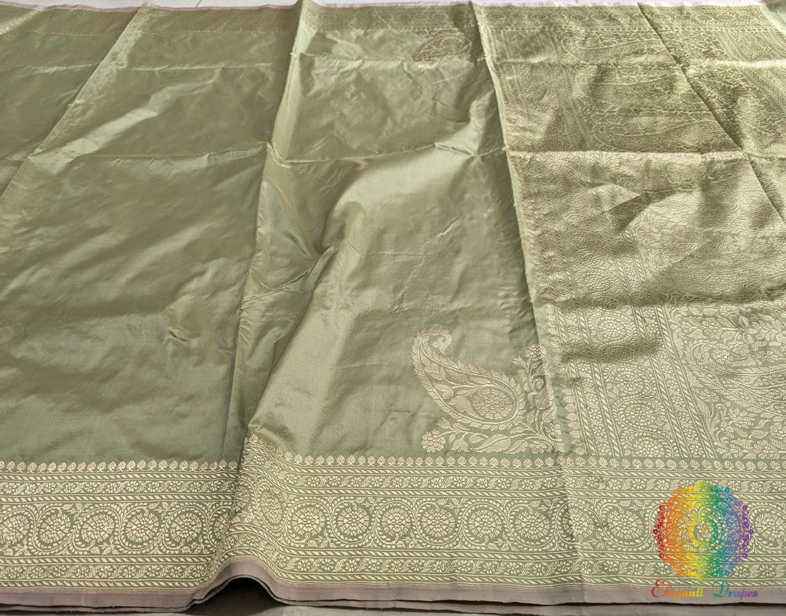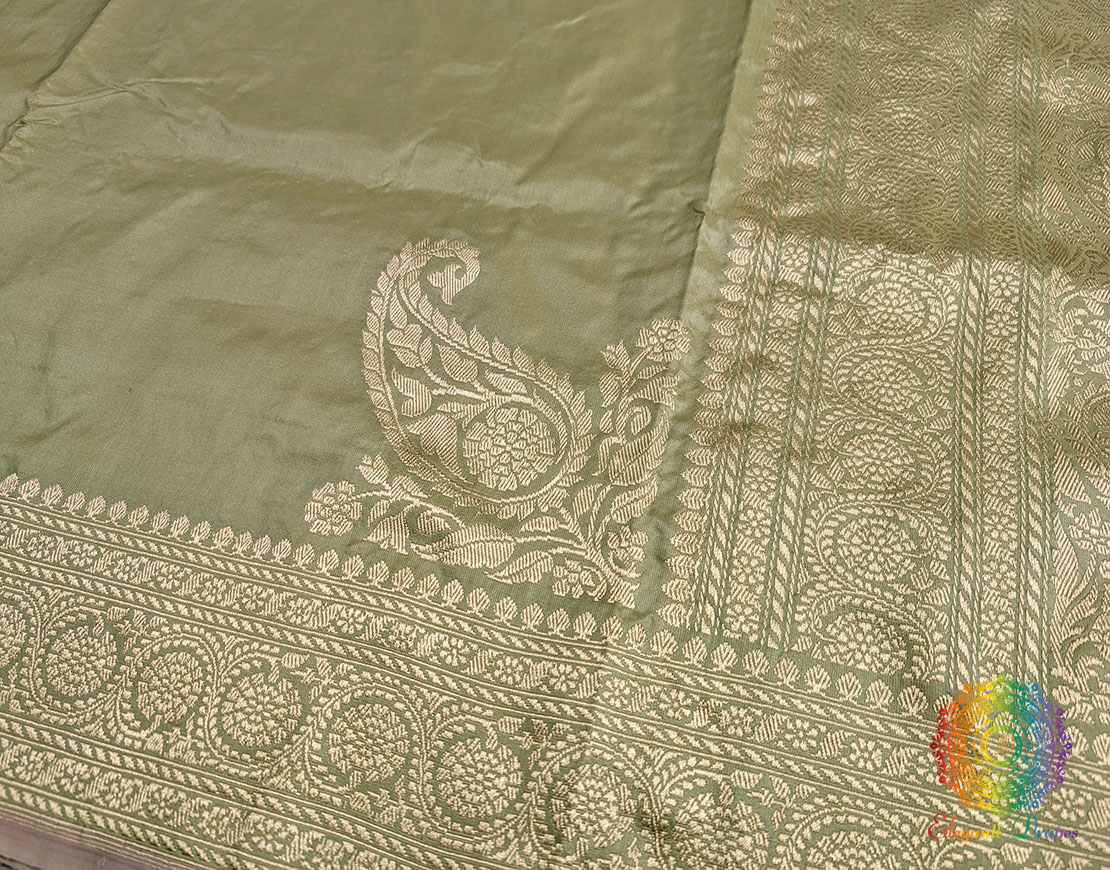 Sage Green Banarasi Handloom Katan Silk Konia Saree
