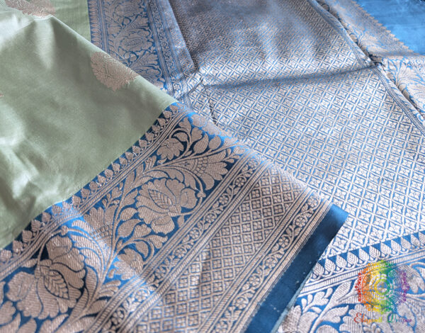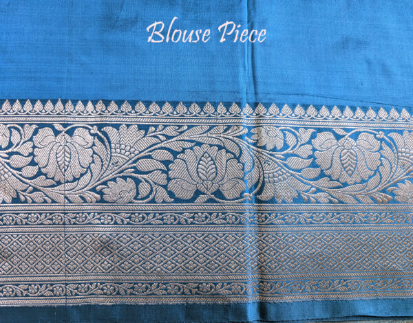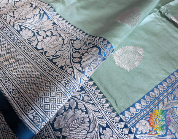 This Sea Green Banarasi Handloom Katan Silk Saree is a statement of elegance and heritage. Woven in pure silk (pattu) with fine silver zari, the saree radiates luxury while carrying forward centuries-old craftsmanship. This saree highlighted with rich zari work makes it a versatile addition to every woman’s collection — truly a saree not to be missed.