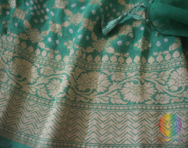 Sea Green Pure Banarasi Khaddi Georgette Bandhani Saree