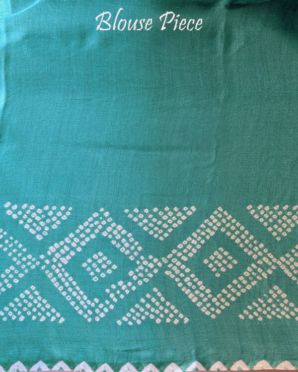 Here we have a gorgeous Sea Green Pure Gajji Silk Bandhani Saree.  Moreover, the fabric is pure Gajji Silk giving the saree is lustrous and rich look. Its a very light weight sarees and easy to drape. Surely the weaving and the tie and dye method of Kutch saree is unique and makes it stand out.