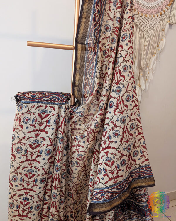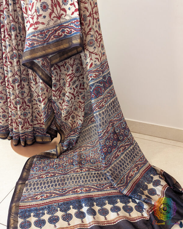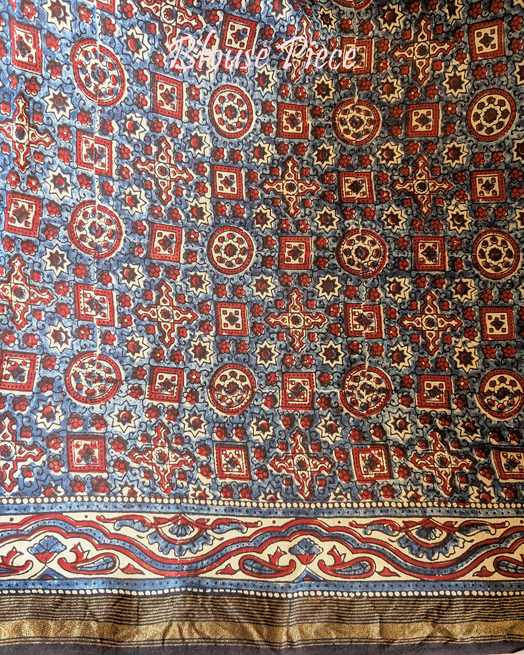 Step into timeless elegance with our White Chanderi Ajrakh Saree.