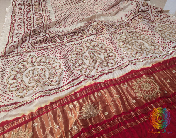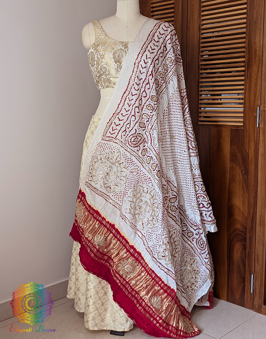 White Gaji Silk Bandhani Gota Handwork Dupatta